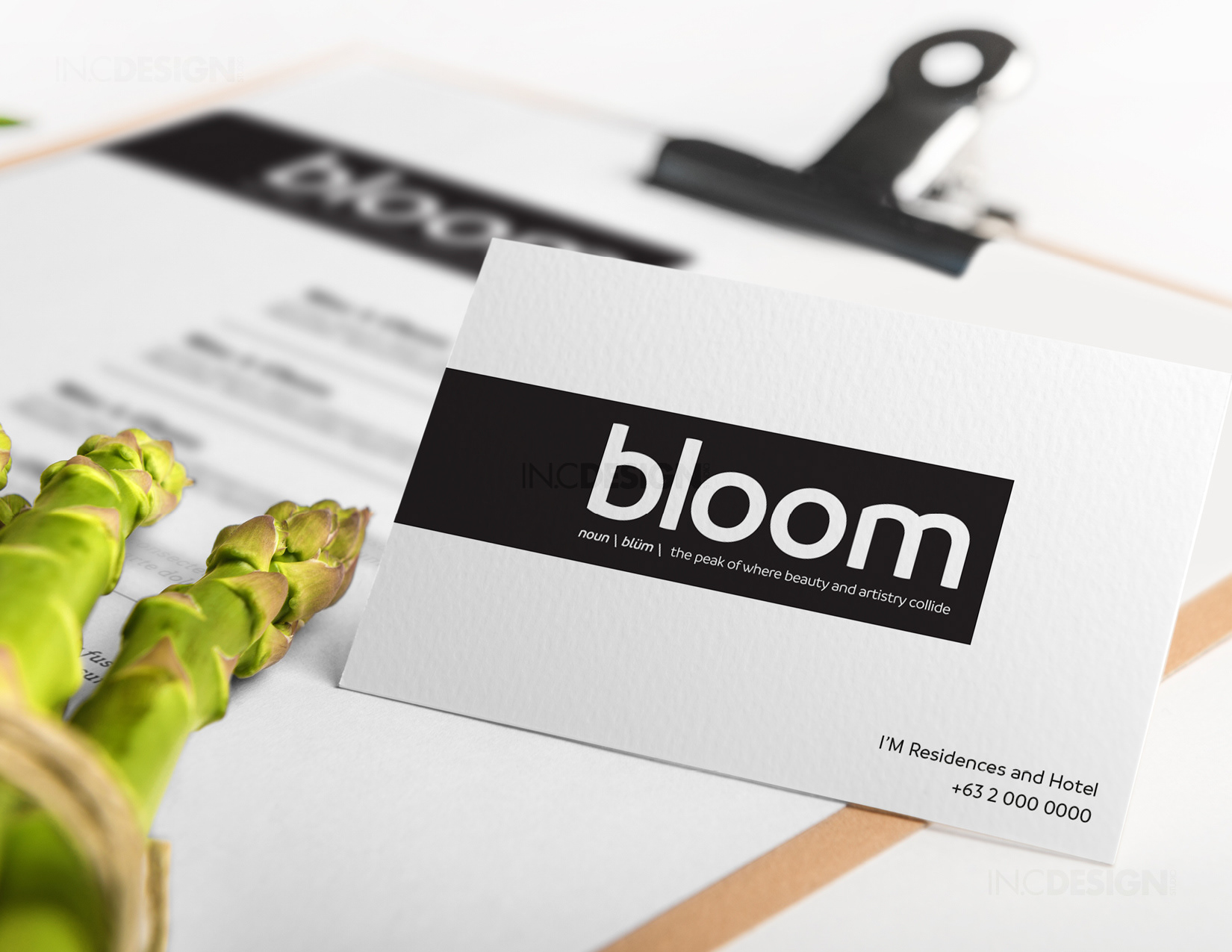 Bloom World Cuisine. Logo design and branding for the in house restaurant for I'M Hotel