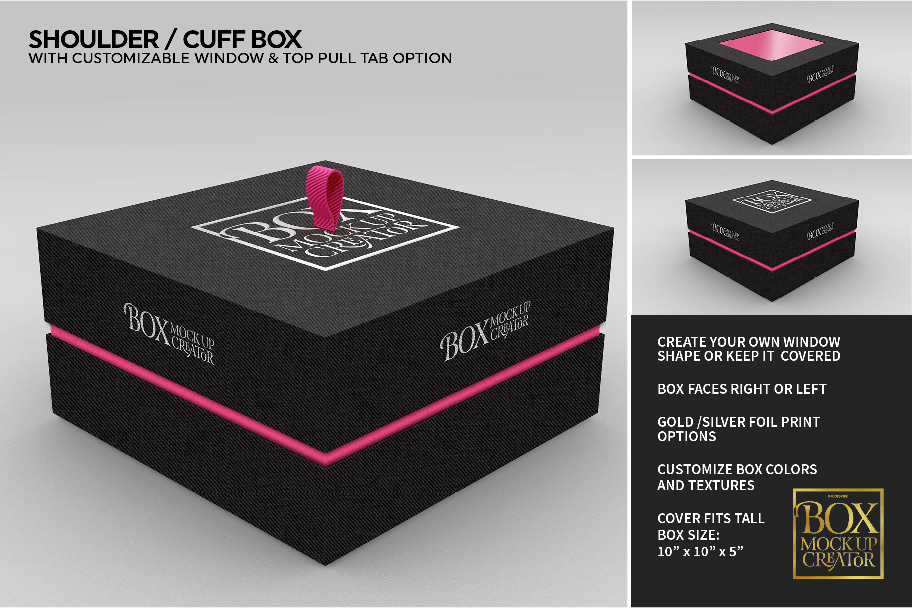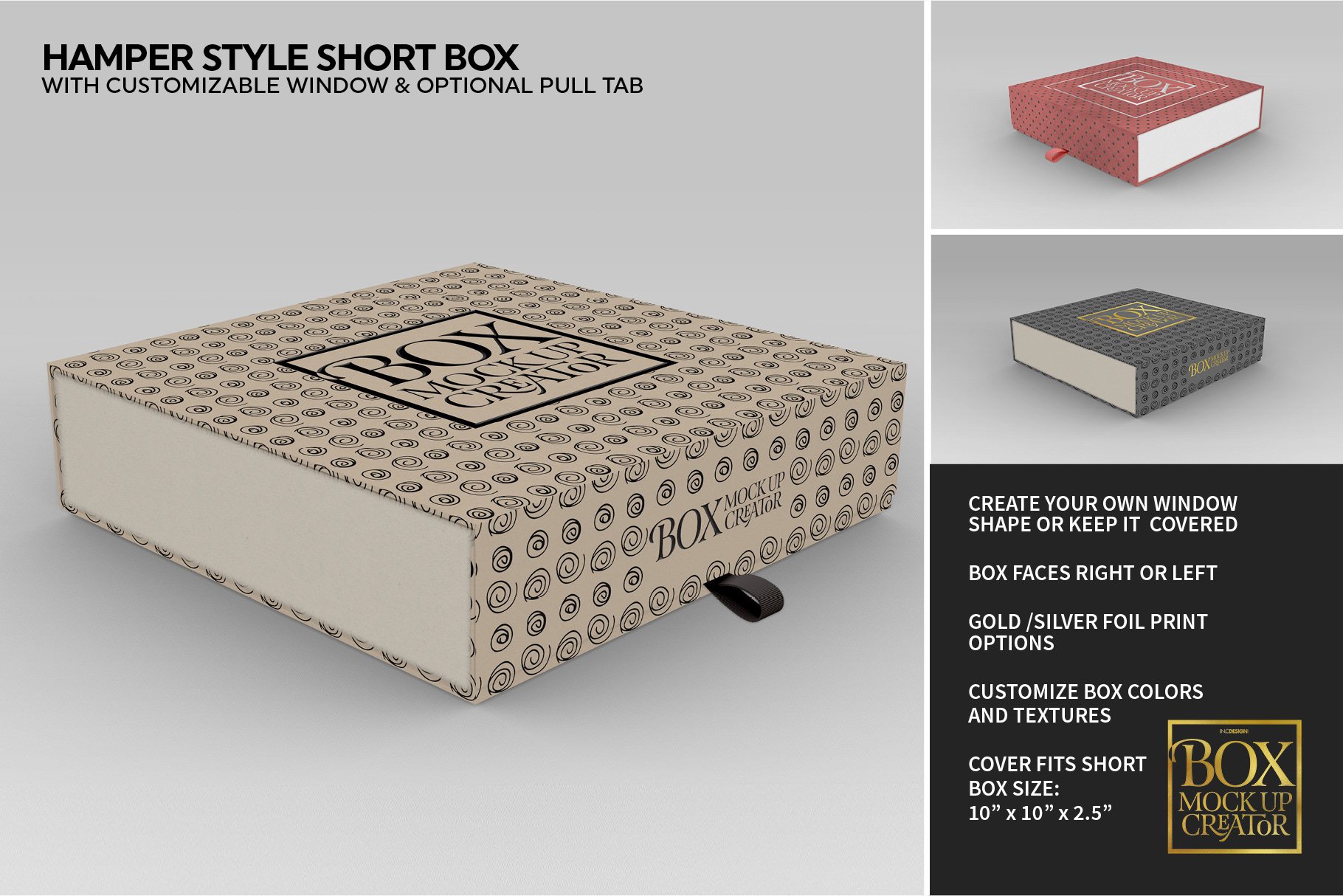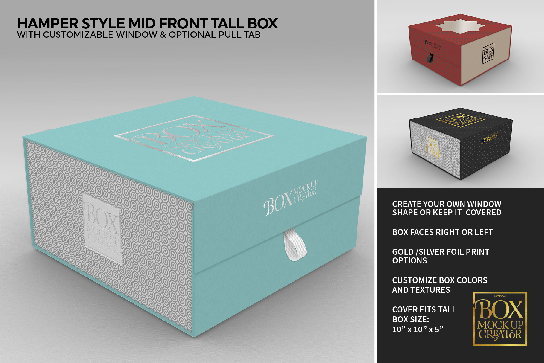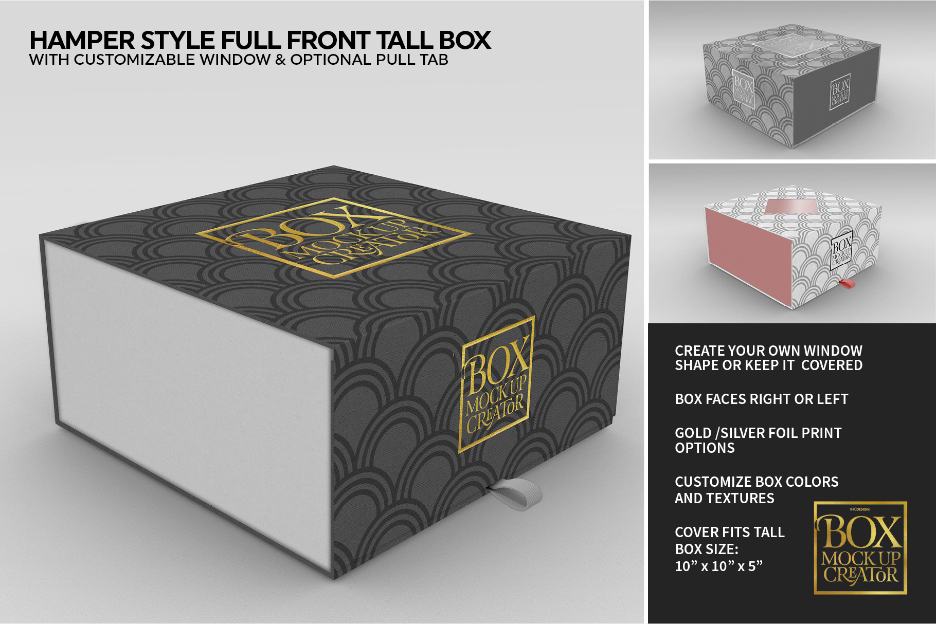 - Choose to show or hide pull tabs (for hamper styles and sleeves)