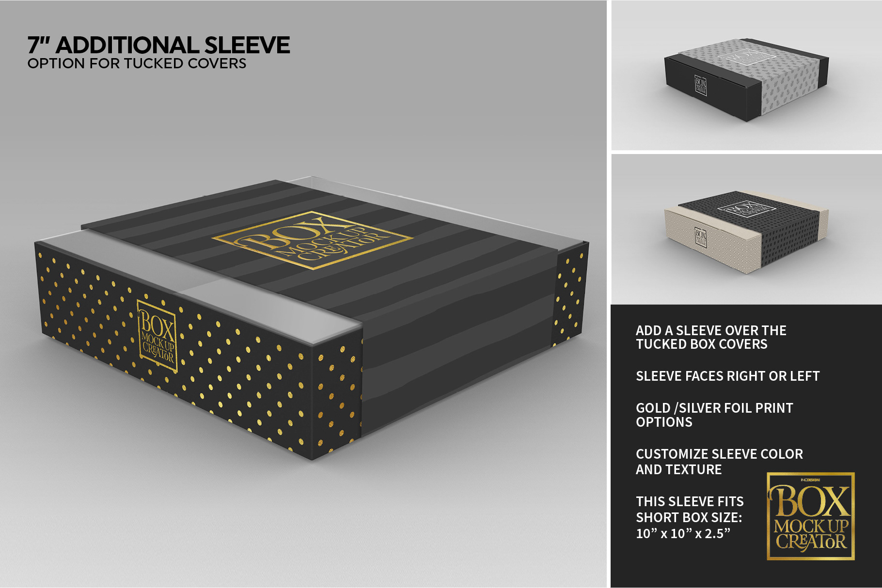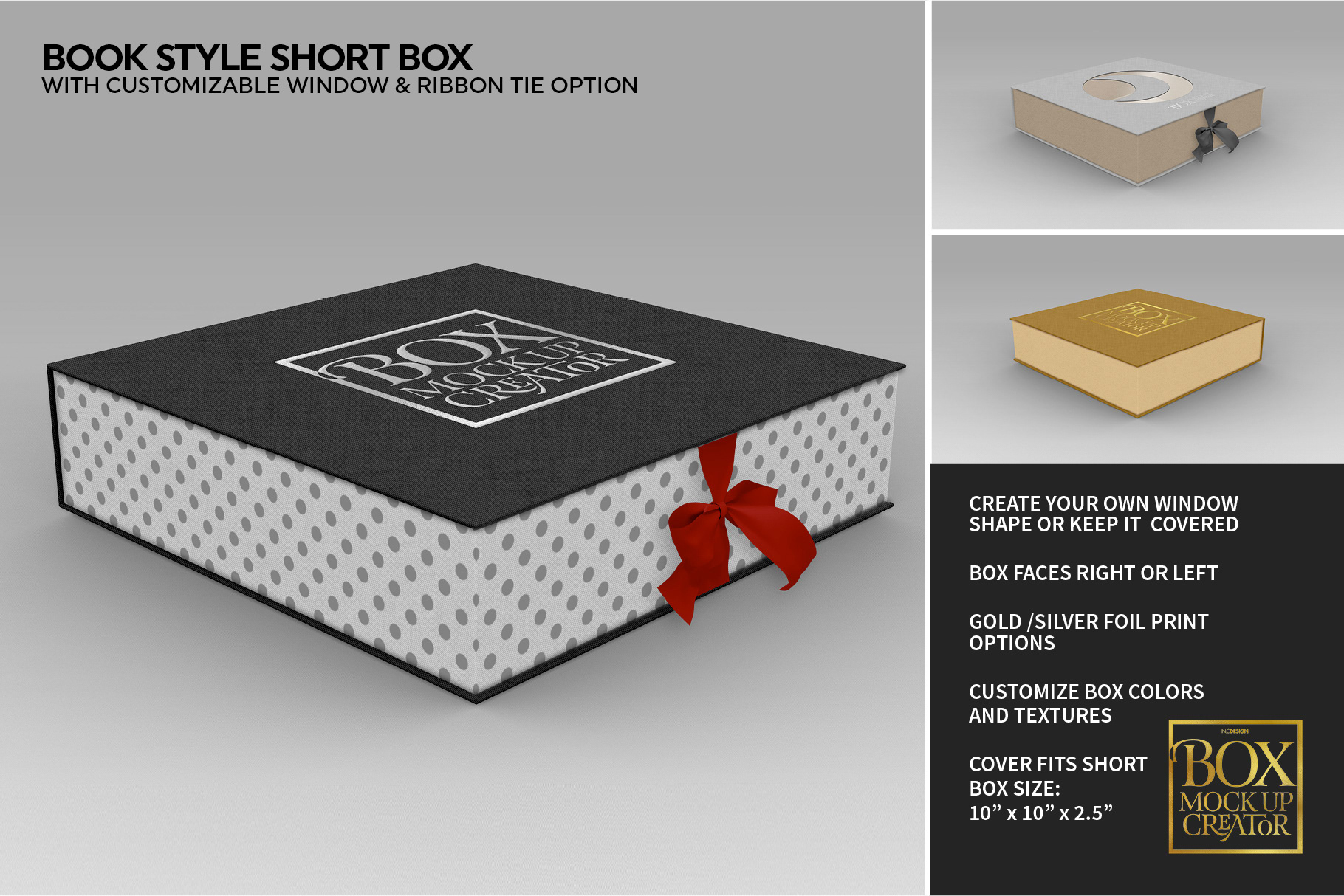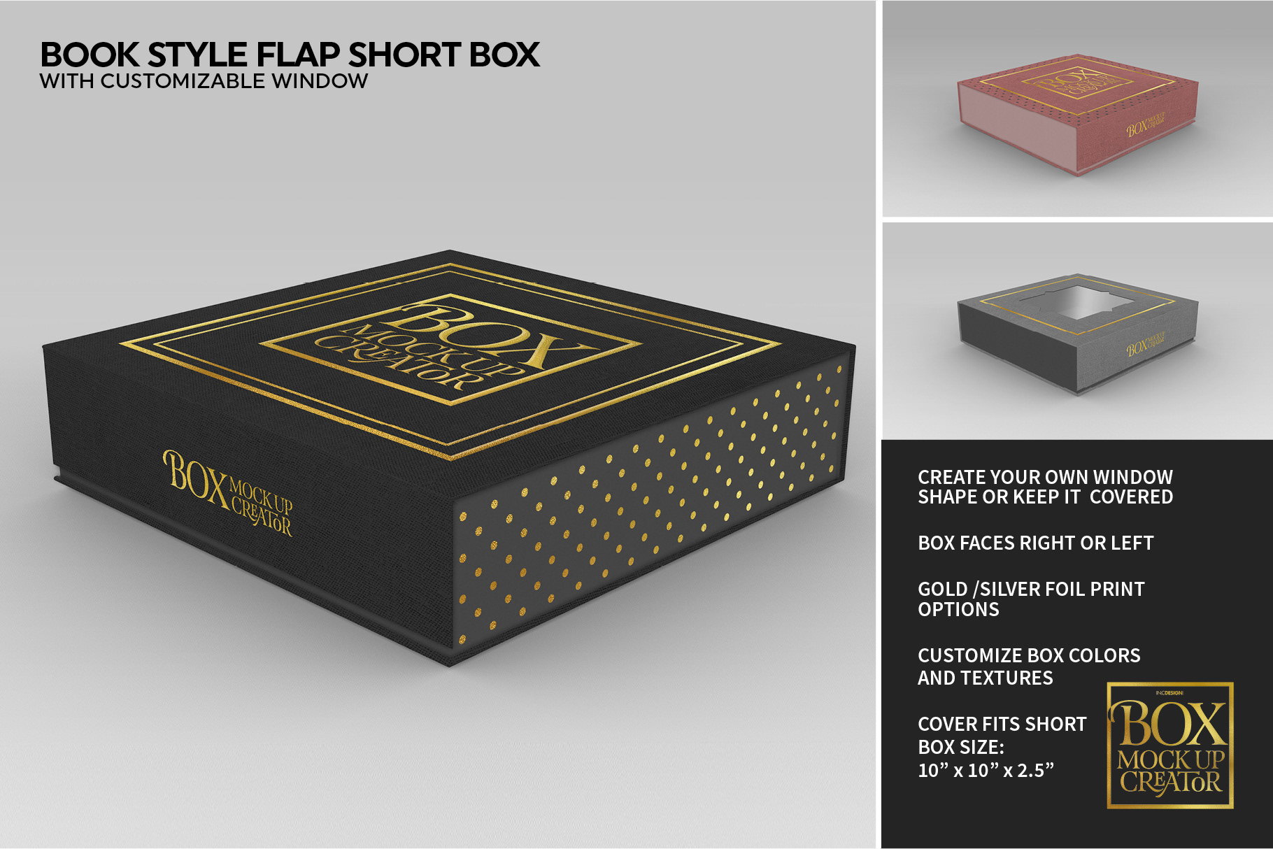 - Gold, silver or regular print options on box