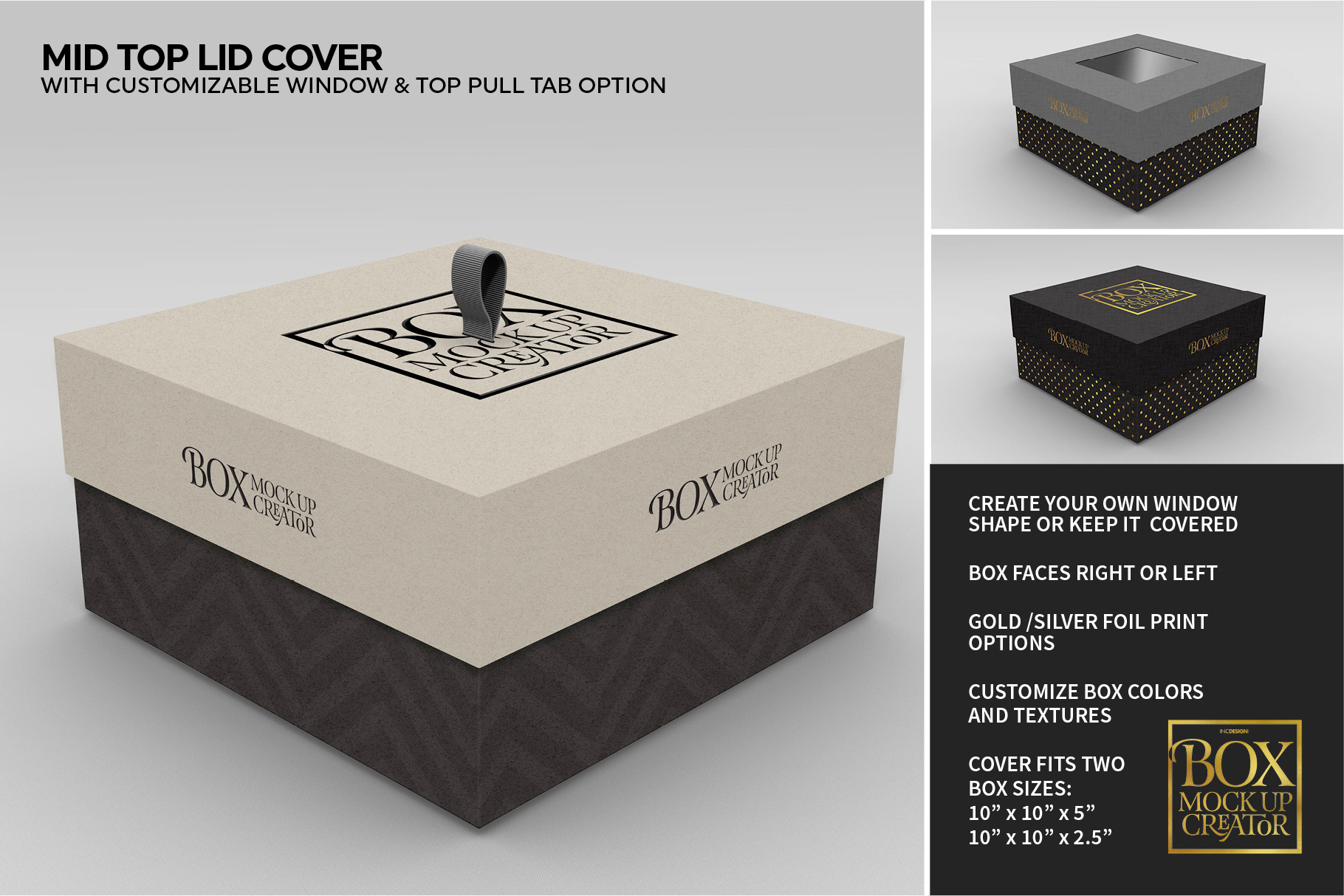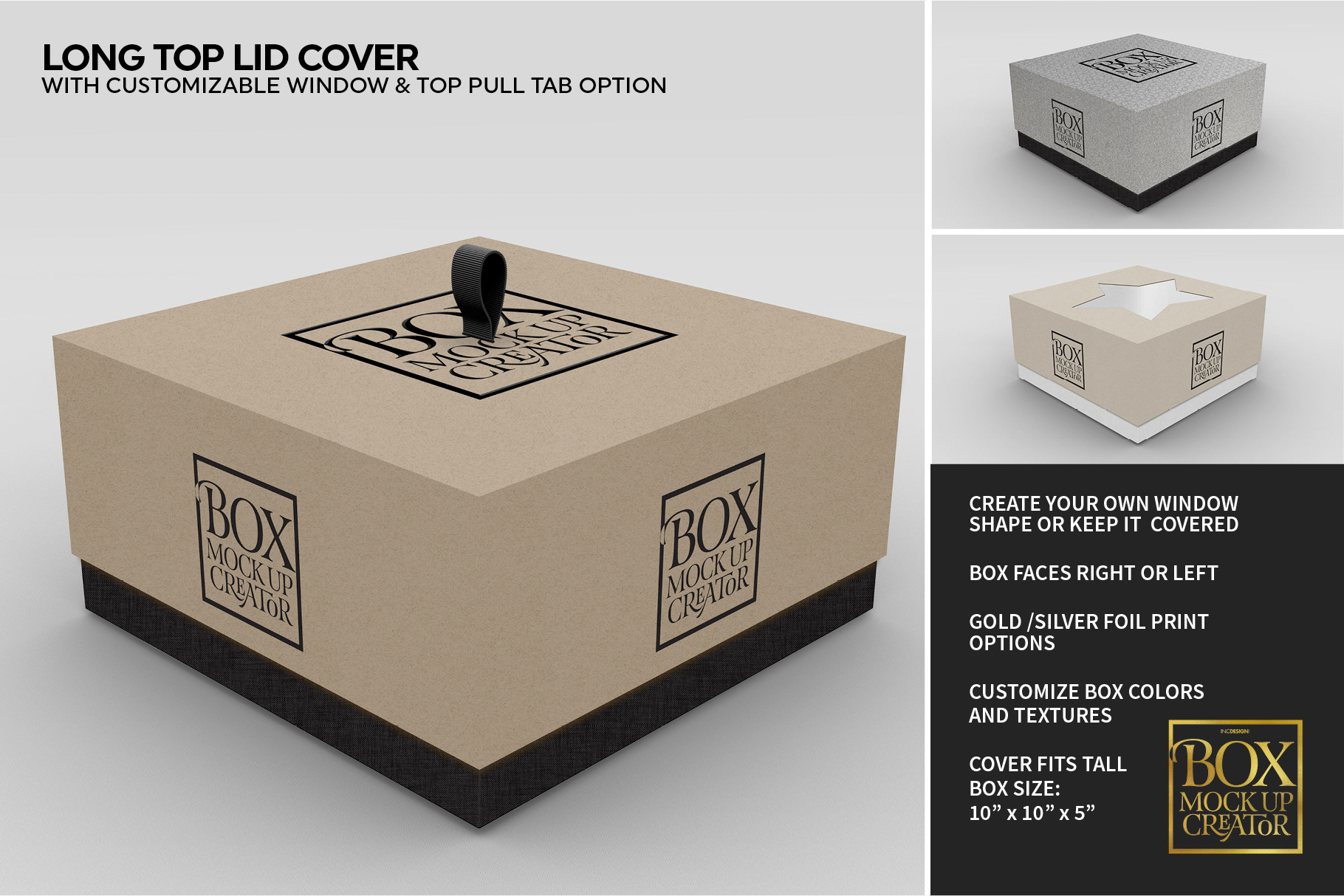 - Add a design and choose box material for both the base box and the cover
