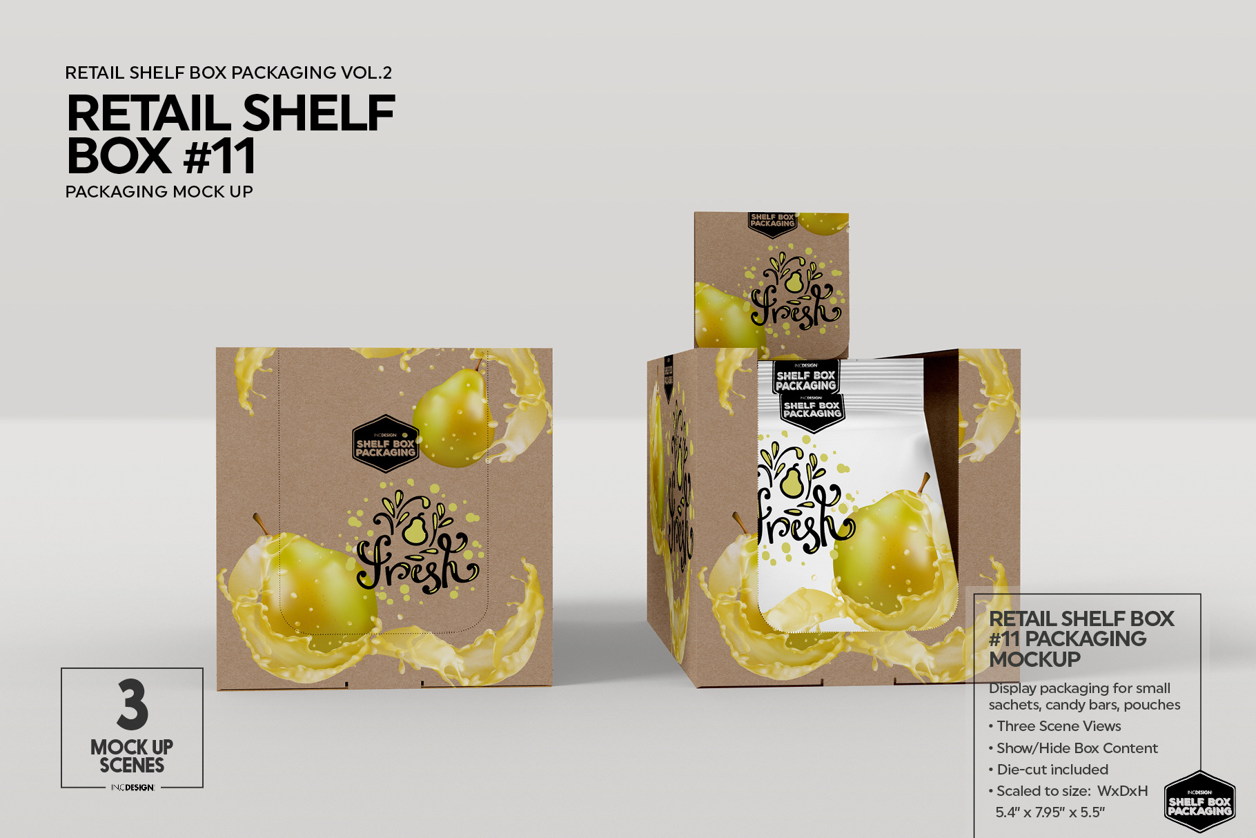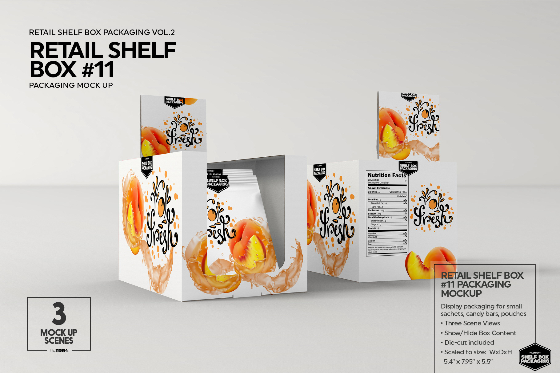 Retail ShelfBox Template Mockups. Smart Layers, easy editing.
