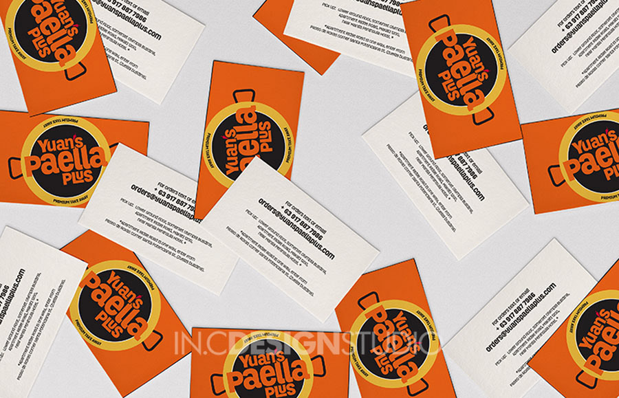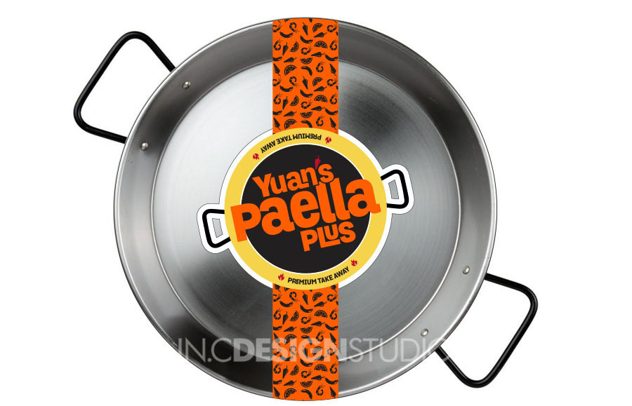 Logo and branding design for Yuan's Paella Plus, a premium take out food business.